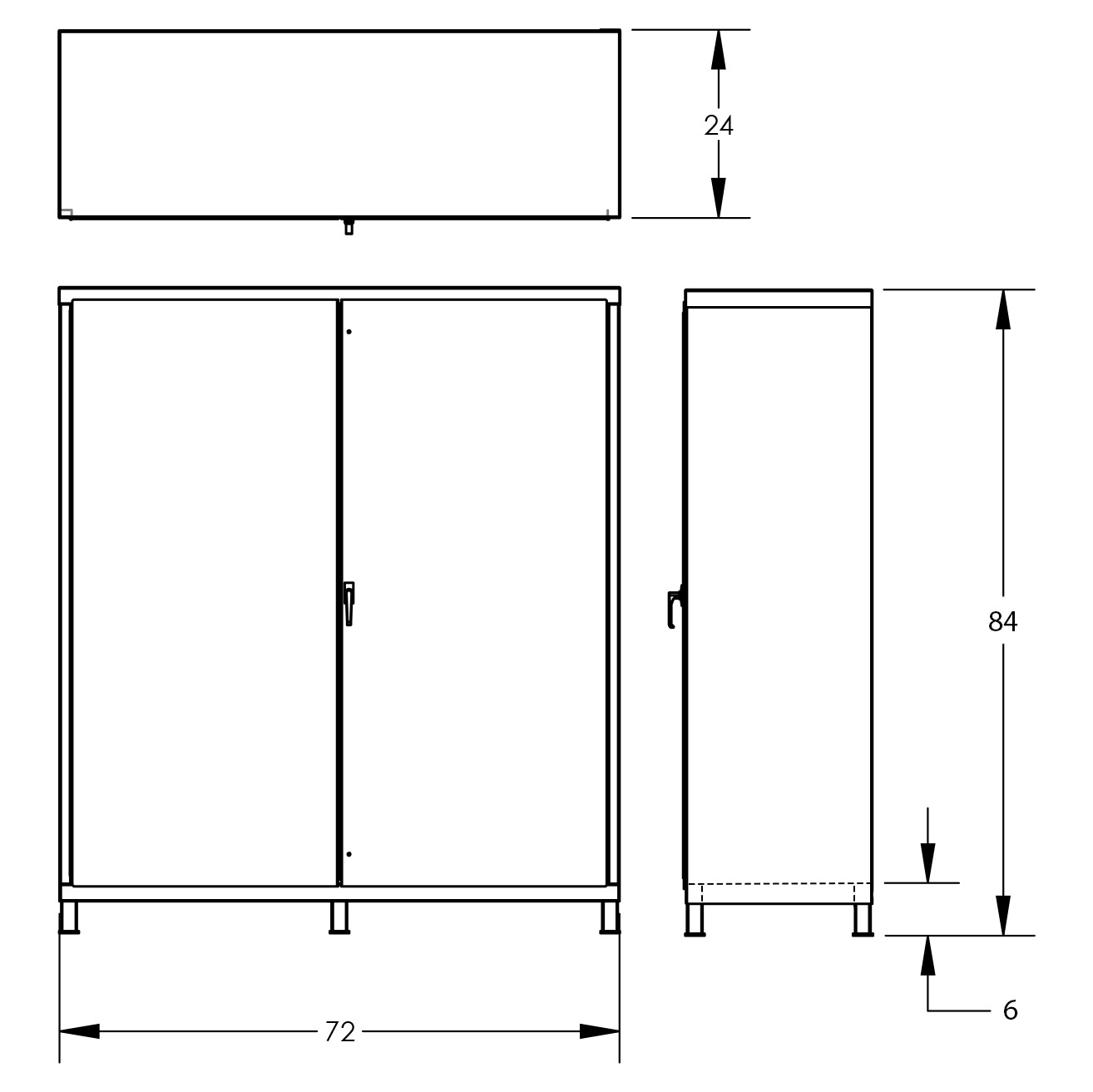 • 72”W x 24”D x 84”H.