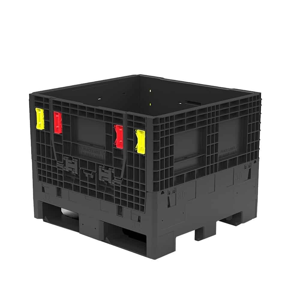 The Monoflo BC-3230-34 Collapsible Bulk Container are a unique combination of high-pressure injection molding technology and a proven hot-plate welding process that delivers the best strength-to-weight ratio in the industry. These bulk containers offer superior quality and value. Made from high-density polyethylene, these 2,000 lb. capacity containers are built to provide years of service under tough conditions. These 30″ x 32″ footprint, 34″ height containers are stackable, easy to assemble and knock down, are 100% recyclable, and save on storage and transportation costs. They have a pallet jack and 4-way forklift access for secure and efficient handling. Drop gates on the 32″ sides allow for easy access to the contents of the container. These collapsible bulk containers are ideal for storing and handling various parts, industrial materials, and commercial supplies—black color. Optional lid.