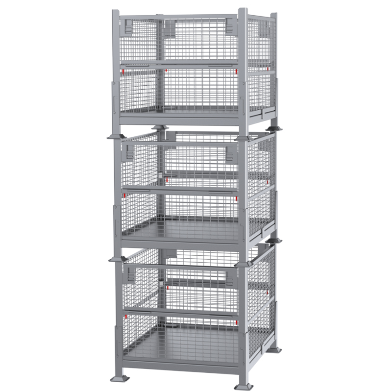 The Collapsible Drop Gate Wire Mesh Container is 40.5″ x 34.5″ x 32″, our collapsible container is expertly crafted using durable 9 gauge steel, ensuring that it can withstand even the toughest of industrial environments. We know that durability is key when it comes to storage solutions, which is why we’ve spared no expense in creating a product that will stand the test of time. The reinforced construction guarantees that your precious cargo will remain safe and secure, whether it’s for professional or personal use. With an impressive weight-bearing capability of 3200 lbs, and has a standard zinc plated finish.