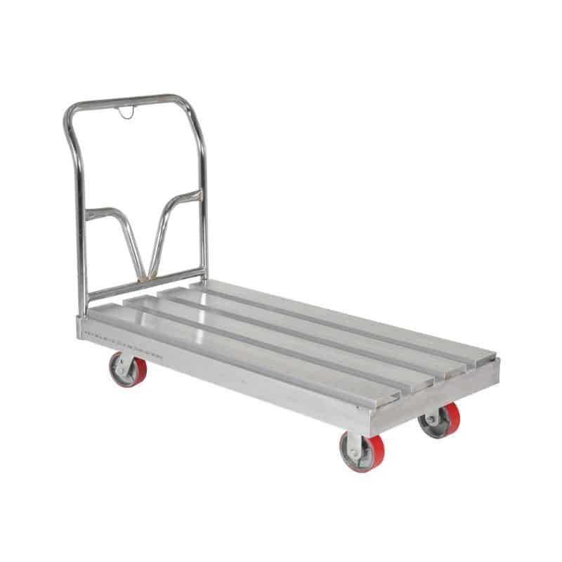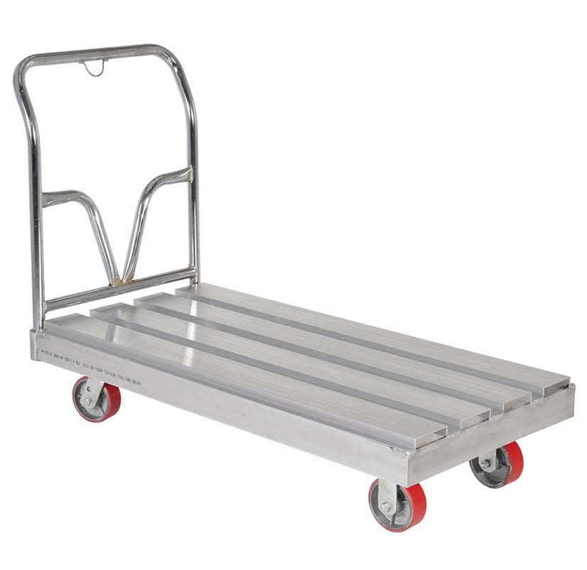 Rugged dependable service at an economical price. This Vestil SDD-3060 Aluminum Platform Truck with extruded deck sections is engineered for high load capacity, durability, and shock resistance. All aluminum construction. Includes one (1) removable high-polished steel handle (handle design may vary from what is shown). Ideal for commercial, industrial, and warehouse areas.