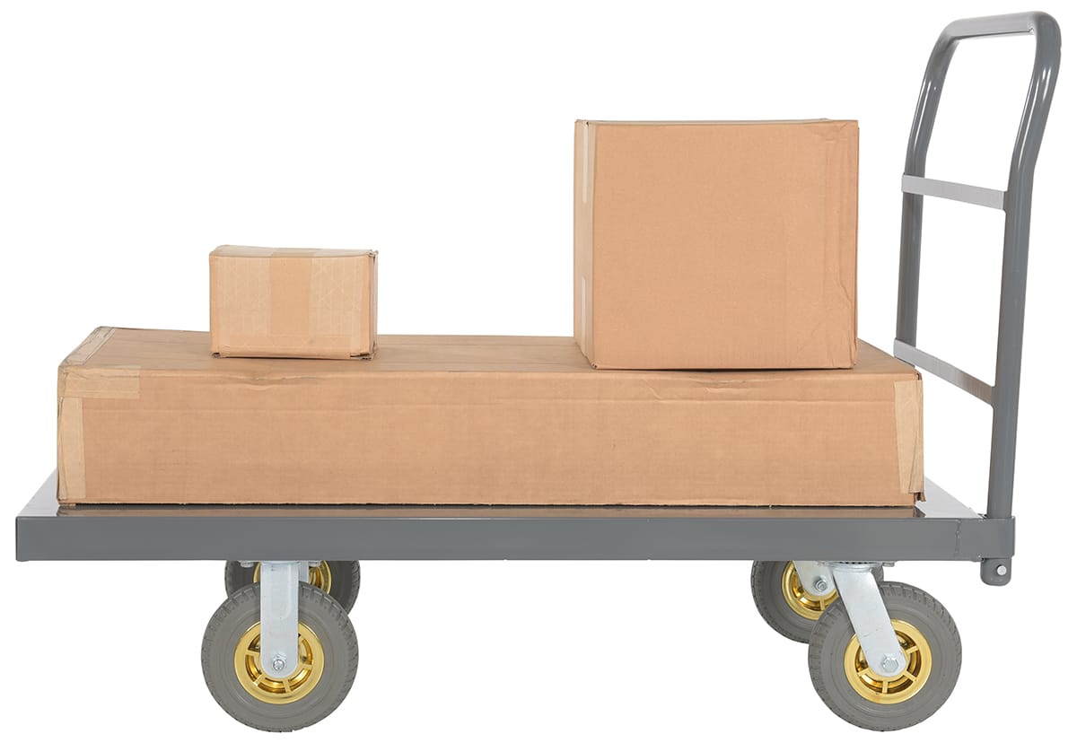 • Platform truck with solid, smooth steel deck is all welded for maximum strength