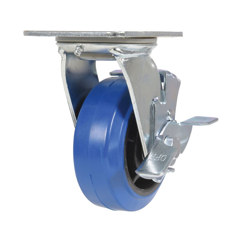 The Vestil CST-BB-5X2ER-SWB Elastic Rubber Swivel With Brake Caster packs a powerful punch with its blue elastic rubber that is known for smooth and quiet operation, all while offering an impressive capacity suitable for more industrial applications. Get the best of both worlds – comfort and high performance!