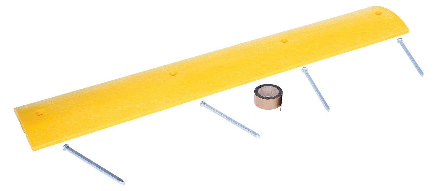 Introducing the Vestil SBDA-72 Plastic Speed Bump Asphalt Hardware – the perfect solution for all your parking needs, indoors or outdoors. This speed bump not only prevents accidents, but also ensures the safety of people and property. With easy installation and removal by just one person, it offers unbeatable portability. Made from durable recycled plastic, it can withstand heavy traffic and the daily wear and tear caused by chemicals and sunlight. Plus, it features a dual cable channel for added convenience. The HD asphalt kit includes anchors, bolts, and washers, ensuring a secure installation. Simply epoxy the HD anchor into the ground, then attach the speed bump with the bolt and washer for a reliable and long-lasting solution.