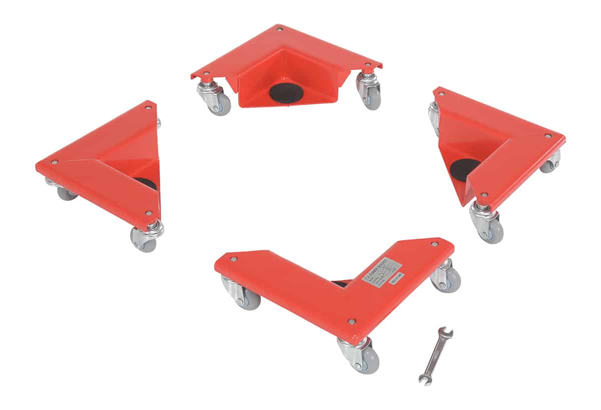 Corner Dollies are the easy way to transport loads in close quarters or odd-shaped equipment or furniture. With its low-profile design, Corner Dolly makes it easy to navigate through tight spaces. Simply lift one side with a jack and insert dollies on corners. Repeat for the opposite side and you’re good to go!