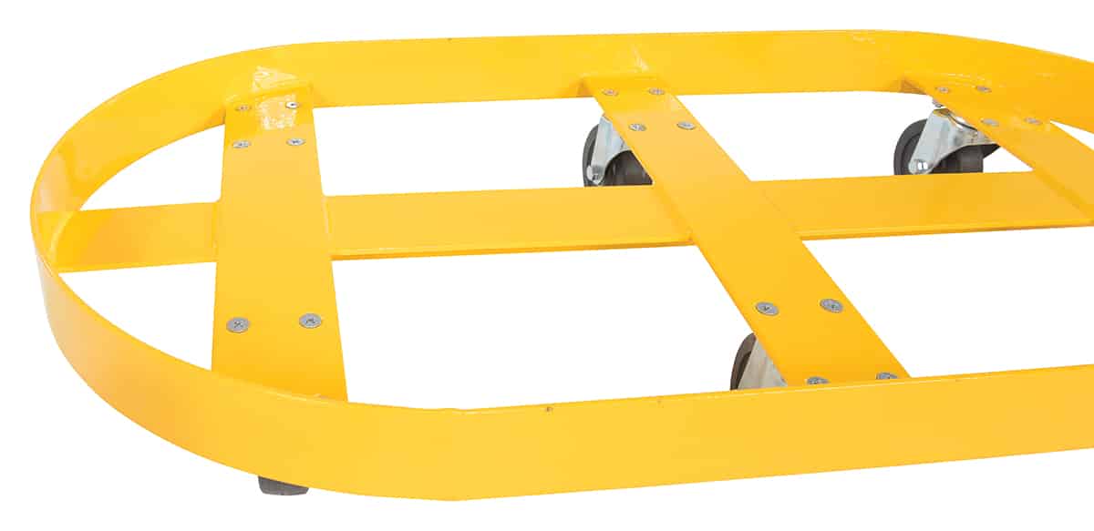 A Vestil DRUM-X2-30-GFN Double Drum Dolly with Glass Filled Nylon Casters is a revised look on an old classic. The double drum cart allows the user to transport two drums in a single load. This not only helps to save time but also minimizes the manual labor of handling individual drums. Six glass-filled nylon casters add maneuverability and durability when traversing a variety of surfaces. Baked in powder coat finish for added long-lasting toughness.