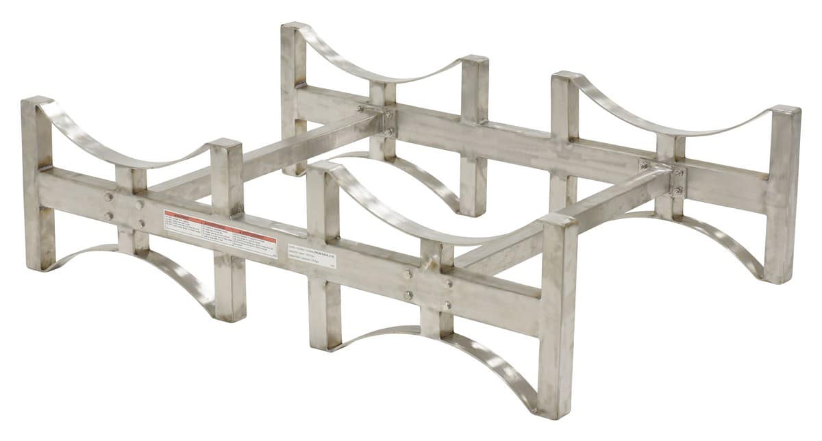 This Vestil DRUM-RACK-2-SS Stainless Steel Stackable Drum Rack has four-way fork truck access. Not recommended for stacking more than four (4) racks high. All steel construction with formed steel cradles. Bolt together assembly with hardware included.