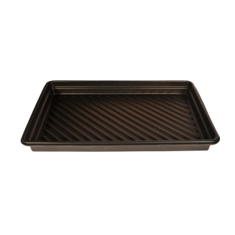 Vestil UT-TRAY-2436 Heavy-Duty Polyethylene Utility Tray keeps messy drips and spills off warehouse and factory floors. Heavy duty polyethylene construction will not rust or corrode. Ribbed bottoms keep cans, pails, and other containers elevated above any spills or leaks. Stackable for easy storage, when not in use.