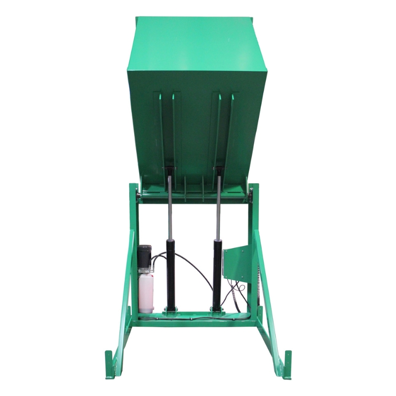 Valley Craft’s F80170A0 Box Dumper is built to improve workplace efficiency and safety with its powerful, ergonomic design. It features a spacious 51″ x 48″ chute, supports up to 6,000 lbs., and offers a 72″ dump height to handle a variety of containers including gaylords, totes, tubs, and cartons. The spring-loaded hold-down bar adjusts in 2″ increments to secure containers between 30″ and 56″ tall, while the 12″ elevated chute allows for easy forklift access. Operated by a 460V, 3-phase, 2HP motor, the powered dump cycle is controlled using a 20′ corded pendant and completes in less than 60 seconds. For added control, operators can stop or resume the cycle at any time. A dual-flow hydraulic control system ensures smooth, balanced performance. Constructed from heavy-duty 7-gauge steel with a green powder coat finish, the F80170A0 is designed for long-term durability. Floor-mounting holes and safety decals are included, and the unit ships fully assembled and ready to use.