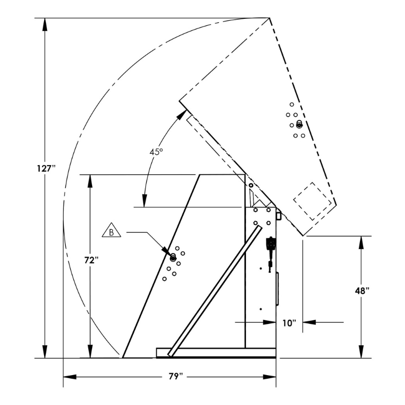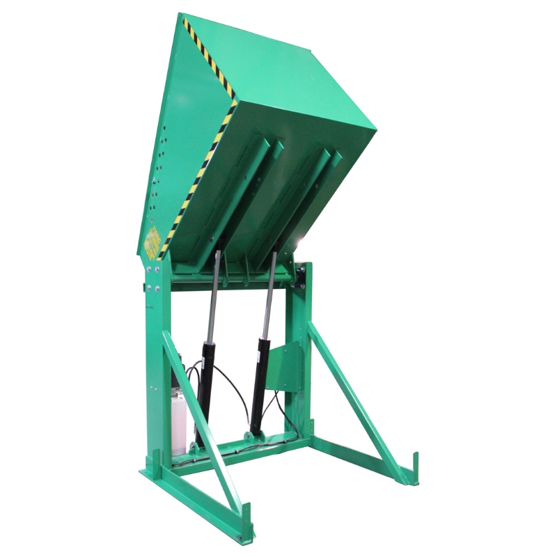 Valley Craft’s Box Dumper (F80189A9) is built to help you unload heavy containers quickly, safely, and with less physical strain. With a 36″ x 36″ chute, 48″ dump height, and 4,000 lb. load capacity, it’s a solid fit for common containers like gaylords, tubs, and crates. The spring-loaded hold-down bar adjusts to container heights between 30″ and 56″, while heavy-duty 7-gauge steel construction ensures durability. A 460V, 3-phase 2HP motor powers the dump cycle in under 60 seconds using a corded handheld pendant with magnetic backing. The unit features dual flow hydraulics for smoother motion and less wear, plus floor-mounting holes and safety decals for added security. It arrives fully assembled, painted in a green powder-coated finish, and is made in the U.S.A.