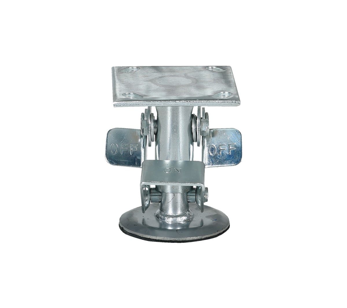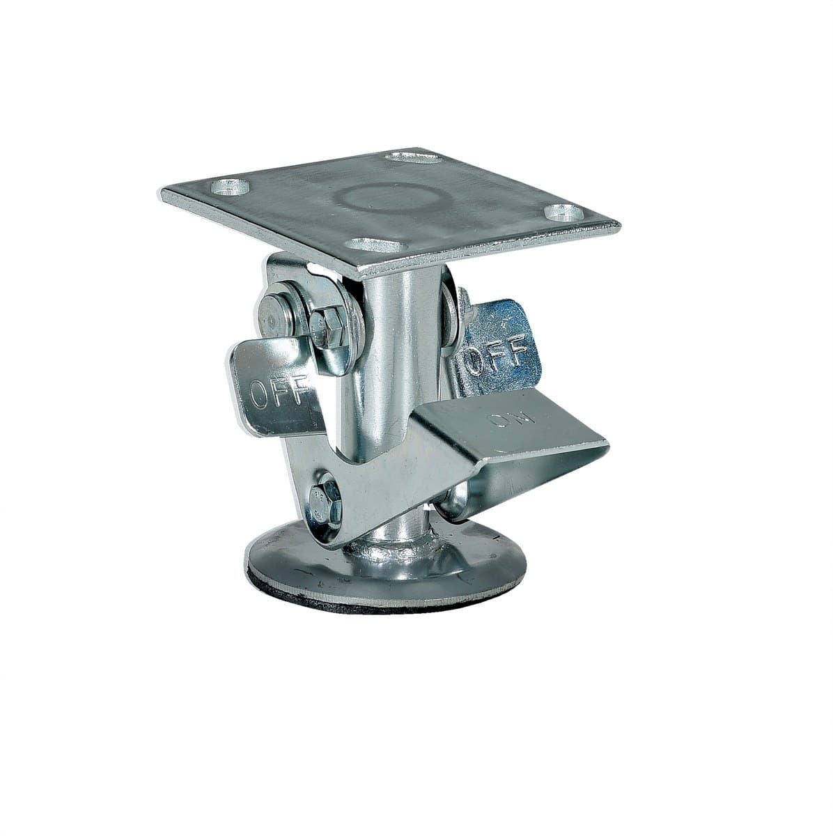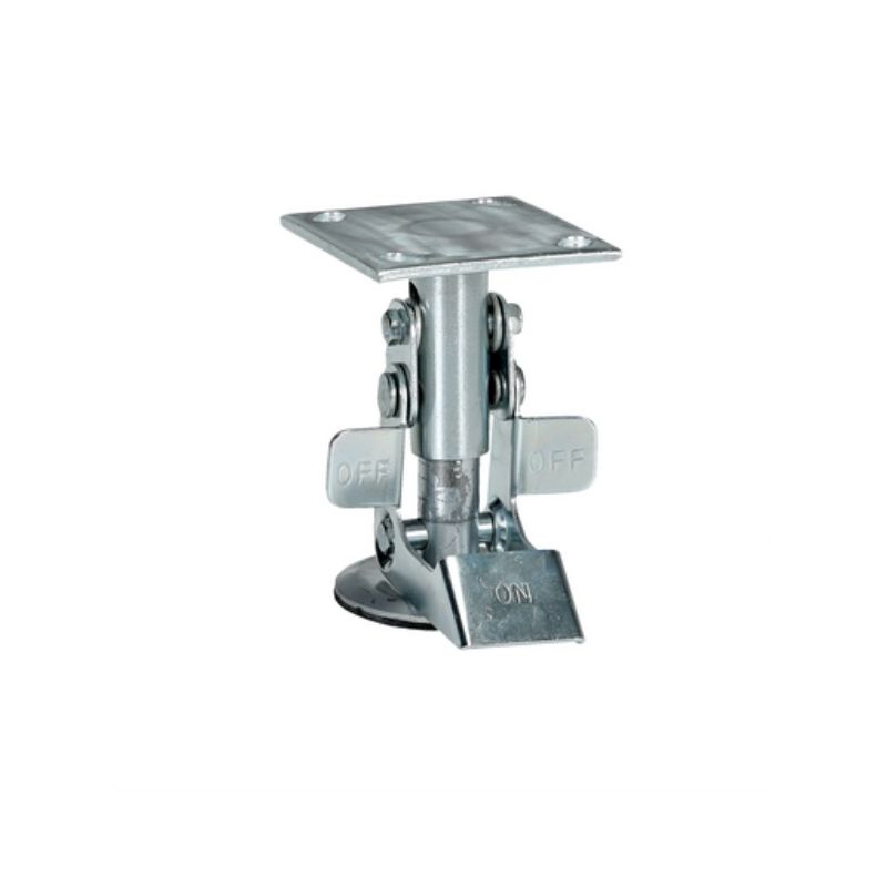 The Vestil FL-LK-4E Steel Top Mount Floor Lock is a versatile solution for keeping platform trucks, fixture dollies, and equipment with casters in place with just the simple pressure of a foot. It locks securely by pressing the large friction face against the floor and can be easily released by kicking the release rod. The brake is not dependent on the casters and can be installed in any convenient location on the cart. The vertical mounting plate is designed to be mounted on the sides of carts and other portable products. The spring-loaded pad is designed to accommodate uneven floors and the unit sits 1 inch off the floor when retracted. Take control of your equipment’s mobility with the Vestil FL-LK-4E Steel Top Mount Floor Lock.
