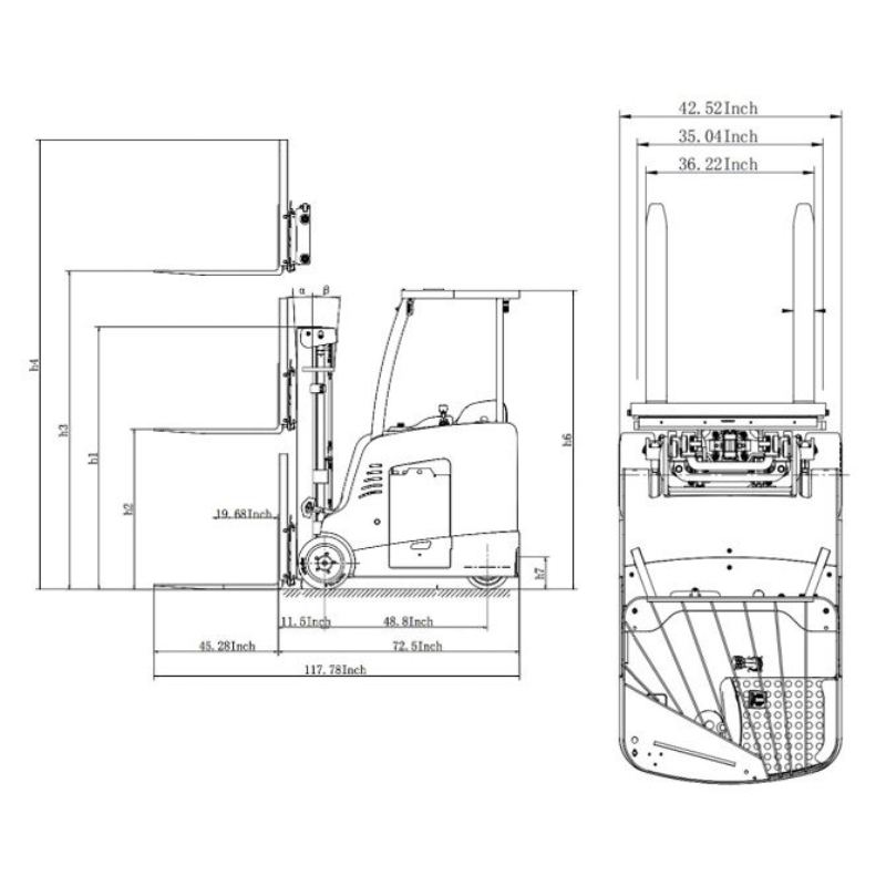 The EKKO EK18RF-LI Stand-up Rider Forklift combines high maneuverability with the efficiency of lithium-ion technology, making it perfect for fast-moving warehouse environments. Powered by a 48V/350Ah lithium battery and controlled by a Curtis system, it delivers smooth, responsive operation with quick recharge times and reduced maintenance. This unit supports a 4,000 lb. lifting capacity with 42-inch forks, a 95-inch lowered mast, and a maximum lift height of 216 inches.