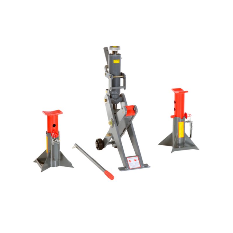 Take care of your fork trucks with ease using the Vestil FORK-J Steel Manual Hydraulic Fork Truck Jack. Equipped with high-quality seals, chrome-plated internal components, and sturdy steel construction, this jack can lift your truck for maintenance with ease. Its manual lever pump allows for manual lifting and its lift height gives ample space to perform different types of repairs. With a detachable handle and its compact size, you can easily maneuver and transport it. Plus, the package includes two jack stands with holding pins that provide adjustable height.