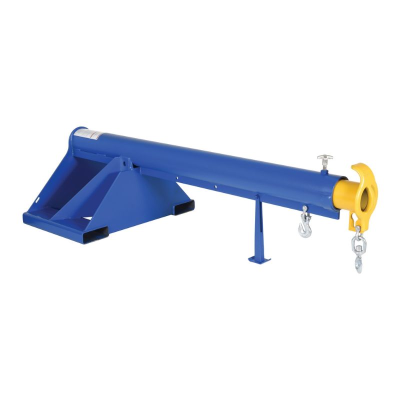 Introducing the Vestil LM-1T-4-24 Steel Telescoping Lift Boom with Fork Pocket Center of 24 inches and a 4000 lb. capacity. Made with structural steel and welded to meet AWS standards, this boom is built to last and provide reliable service for years to come. Featuring an infinitely adjustable locking screw and a safety restraint, you can operate this boom with confidence and security. Plus, it comes with two lifting hooks to make the job even easier. Invest in this robust and dependable lift master boom for your next heavy-duty lifting project.