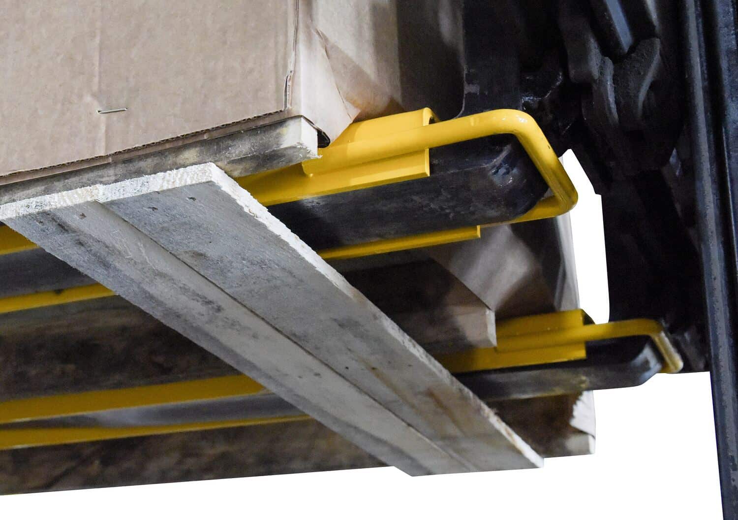 Make lifting long or large objects with a fork truck easier with Vestil FE-4-84 Steel Fork Extensions. These extensions are made of welded steel with cast steel tips and have a powder coat yellow finish. OSHA regulations require that extensions should not be more than 150% of the existing fork length. Easily attach the extensions to the fork by inserting the loop at the tip and sliding it up at a 45-degree angle before laying it over the existing fork. The rear spacer included makes loading pallets into the rear of a trailer easy, even when pushing two or three deep. These extensions are suitable for use with class 2 and 3 forks.
