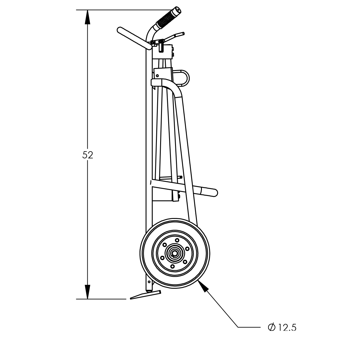 • Maneuvers easily on (2) 12” pneumatic wheels.