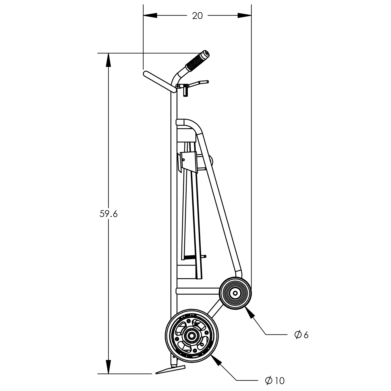 • Maneuvers easily on (4) wheels: (2) 10″ front solid rubber, (2) 6″ rear polyurethane.