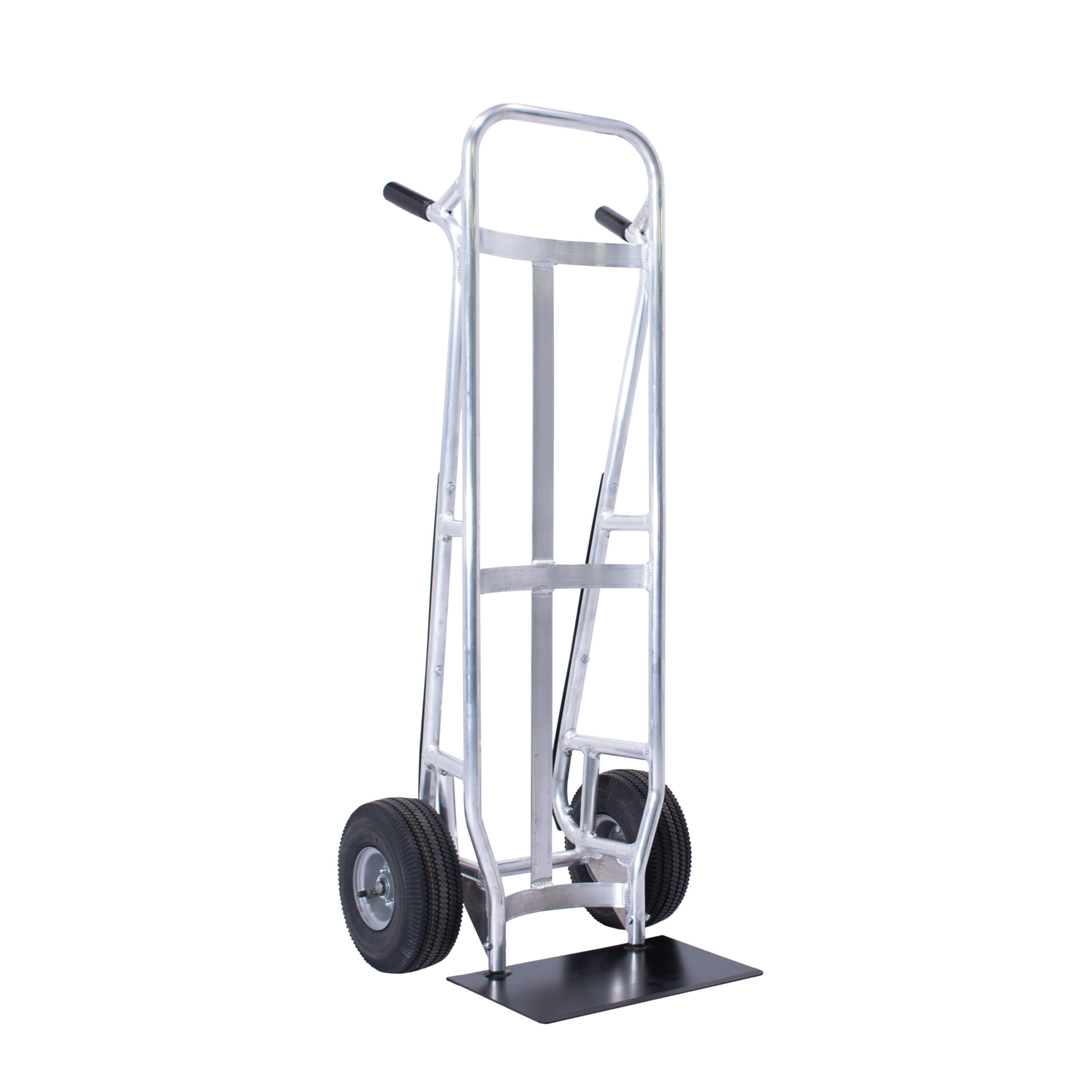 Valley Craft has designed this professional hand truck with a curved back, making it perfect for handling keg deliveries, barrels, and other cylindrical items. The hand truck’s aluminum frame is not only lightweight for easy handling but also spark-resistant, ensuring a safe working environment. It is built for heavy-duty use, featuring a 16″W x 10″D steel shoe and a 600 lb. capacity. Maneuverability is a breeze with its (2) 10” pneumatic wheels and ergonomic design, including rubber grip twin handles and a full loop handle. Standing at 21″W x 20″D x 52″H, this hand truck is crafted from heavy-duty aluminum with solid welds that guarantee durability. Best of all, this unit comes fully assembled and ready for immediate use. Proudly made in the U.S.A, this hand truck offers the perfect blend of functionality, safety, and durability.