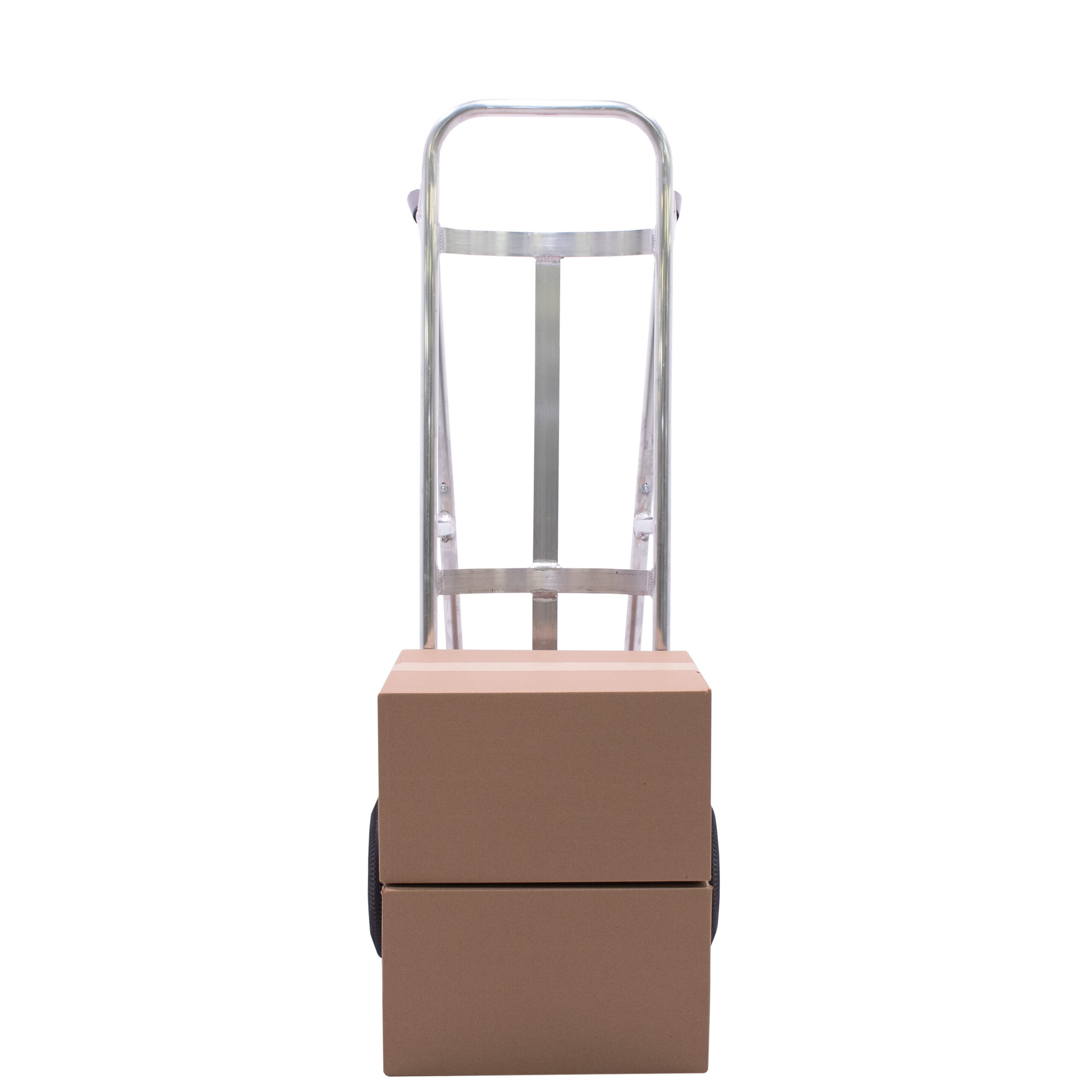 Designed and made in the U.S.A, Valley Craft’s hand truck is built for heavy-duty work. Its aluminum frame, complemented by solid welds, ensures durability while remaining lightweight for effortless handling. The truck features a unique curved back design that easily accommodates keg deliveries, barrels, and other cylinder-shaped items. With a 16″W x 10″D steel shoe and overall dimensions of 19″W x 20″D x 51″H, you can load up to 600lbs without compromising stability. Maneuverability is a breeze thanks to the two 10″ pneumatic wheels and an integrated hand brake that provides added control and safety. The ergonomic design is enhanced with rubber grip twin handles and a full loop handle, promoting comfort during extended use. This hand truck arrives fully assembled, ready for immediate use, making it an excellent addition to any industrial setting.