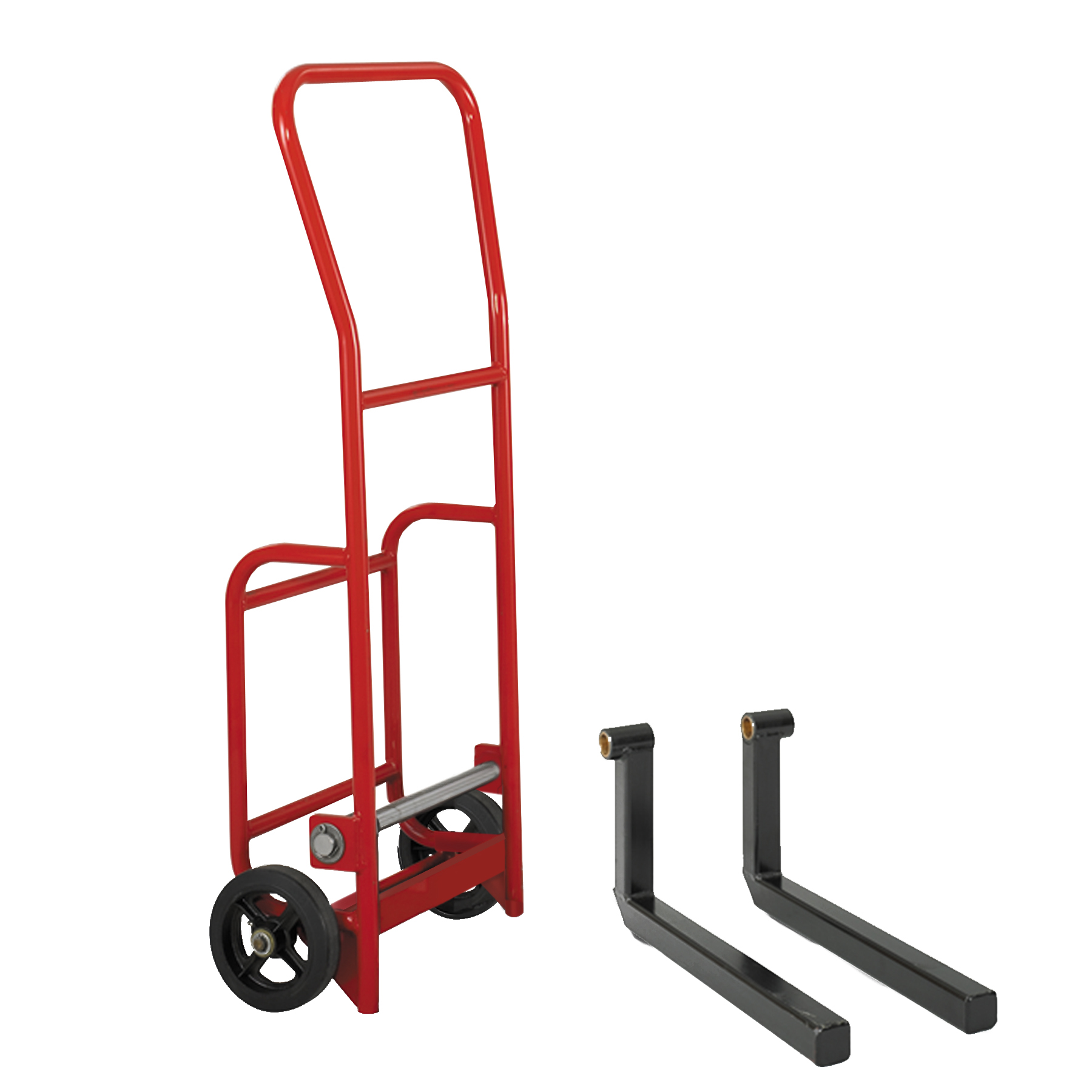 This hand truck stands 52″ high, 25″ wide, and 31″ deep, with an impressive 800 lb. capacity. It’s finished with a premium red powder coat paint for durability and aesthetic appeal. For added convenience, it ships fully assembled and ready to use, with the option to purchase flat forks as an accessory. Proudly made in the U.S.A., this hand truck is the perfect addition to any busy industrial environment.