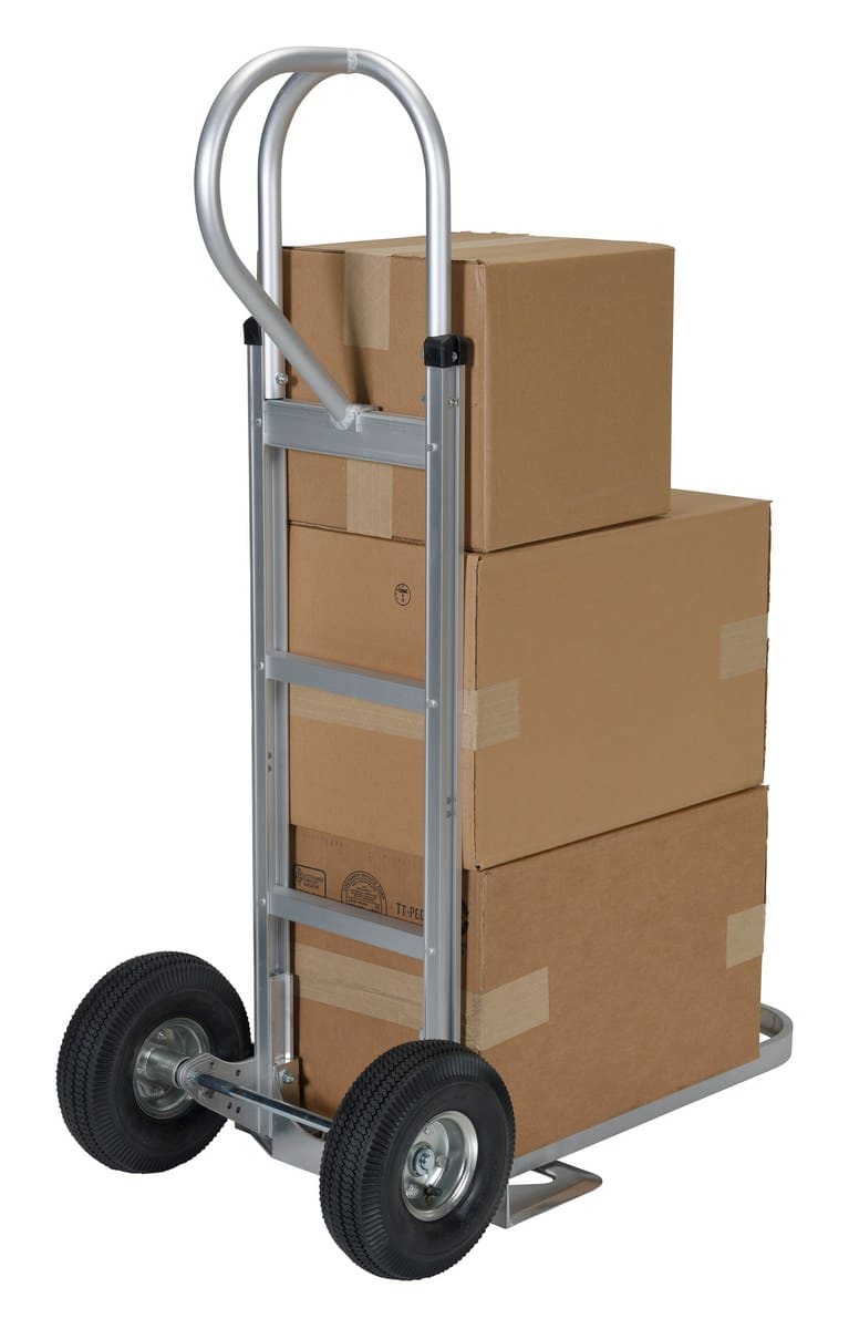 Get the job done easier and more effectively with the Vestil APHT-500A Aluminum P Handle Truck with Pneumatic Wheels. This unique design includes a streamlined “P” shaped handle that not only helps to transport heavy goods but also lets you steer your load without sacrificing maneuverability or gripping power. With its pneumatic wheel feature for added durability, this truck is perfect for users who need an extra hand!