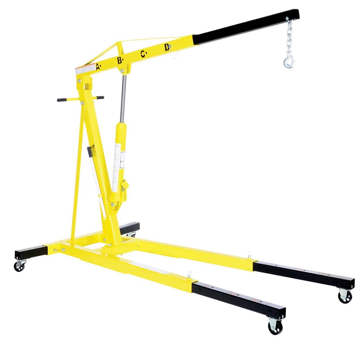 Elevate your lifting game with the Vestil EHN-40-T Shop Crane Engine Hoist with Telescopic Legs. This portable and versatile engine hoist can handle hundreds of lifting applications with ease. Its telescopic boom adjusts to different heights and capacities, while a large-diameter ram can lift even angled loads without breaking a sweat. Plus, enjoy easy transportation thanks to the set of two rigid and two swivel casters. With its heavy-duty steel construction and sleek painted finish, this hoist is a must-have in any space.