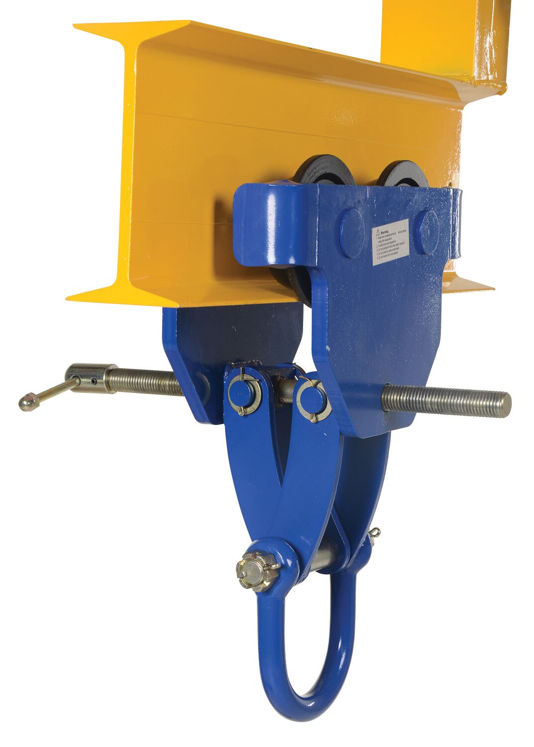The Vestil QIT-2 Steel Quick Install Manual Trolley is your reliable, user-friendly, and safe solution. This trolley is designed to effortlessly adapt to the width of almost any S, H, W, and M-type I-beam. Adjust the width easily with a manual screw mechanism and lock it in place with a secure ring to prevent accidental changes. Tighten the screw mechanism to keep the trolley stationary, just like a beam clamp. With four high-quality rollers featuring sealed bearings, this trolley ensures durability. Plus, it comes with a lifting eye at the bottom for easy attachment of a hoist (hoist not included). Discover the convenience and performance of the Vestil QIT-2 Steel Quick Install Manual Trolley.