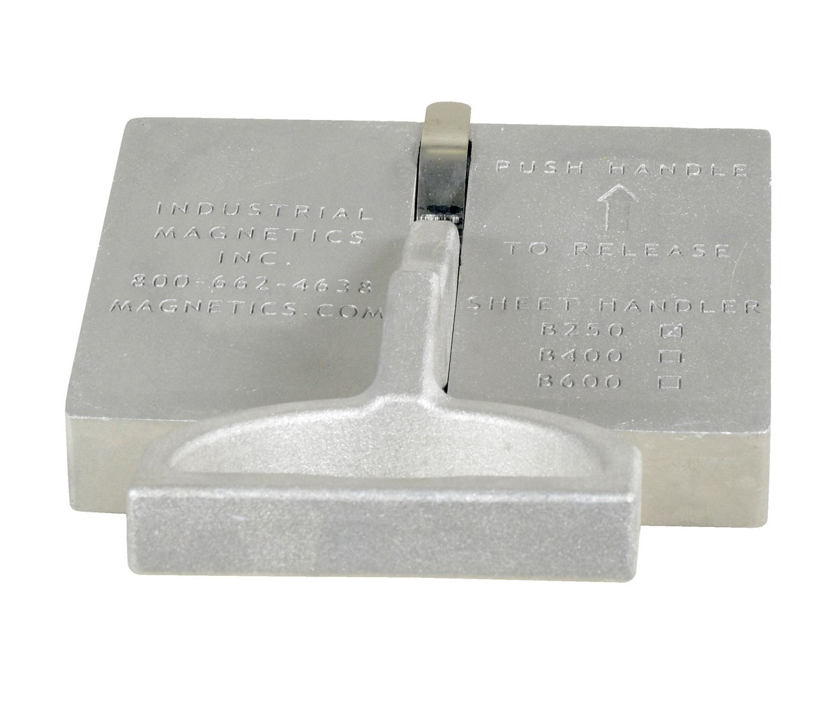 Introducing the Vestil SHEET-125 Sheet Handler – the perfect solution for manufacturing and industrial facilities. With its sturdy construction and powerful magnets, this device makes it easier and safer to handle specific products. The accessible handle ensures a secure grip, allowing for fast and efficient product releases. This tool is designed to handle horizontally or vertically stacked sheets, even if they are hot or oily. To use, simply place the sheet handler on the material and pull the handle back to magnetize. When finished, push the handle forward to demagnetize. Increase productivity and streamline your handling process with the Vestil SHEET-125 Sheet Handler.