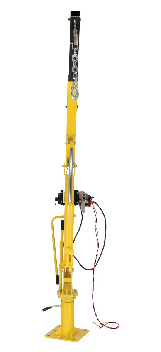 Get the ultimate lifting solution for your pick-up truck bed with the Vestil WTJ-4-DC Steel DC Powered Winch Truck Jib Crane. This crane has a telescopic boom design with a manual hydraulic hand pump that’s perfect for lifting items from the ground to truck bed height and rotating them into the cargo area. Its friction brake winch locks automatically, making it easy to lower loads with a counterclockwise handle turn. With a manual cable winch to lift and lower loads, the unit comes with one fixed hook, one chain slot lock, and one cable hook with a latch, making it the perfect addition to your pick-up truck.