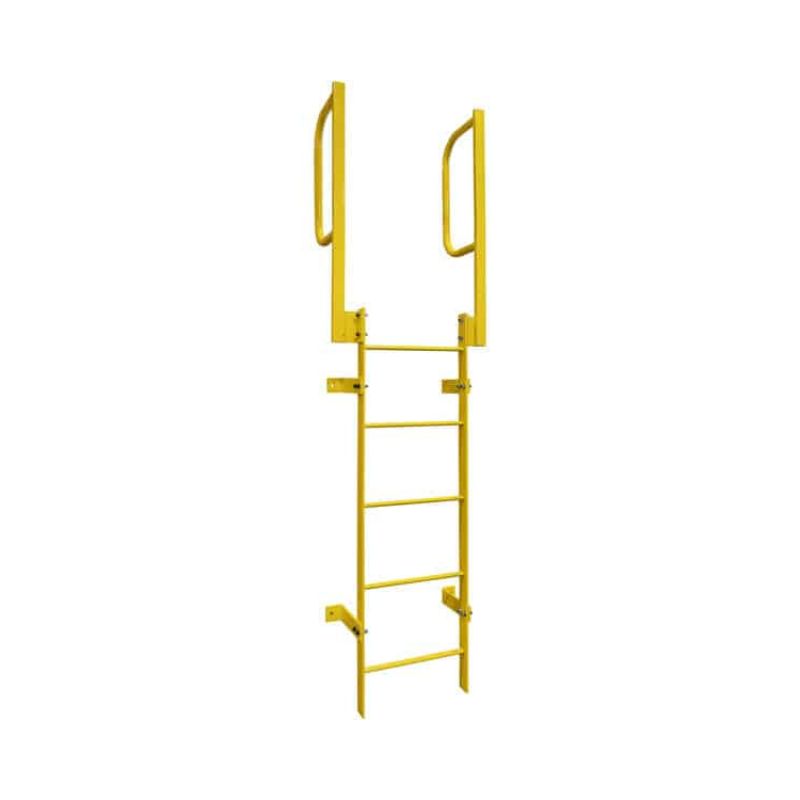 Ensure safe access to your facility with Ballymore WLFS0219-Y 19-Rung Yellow Steel Fixed Safety Ladder with Walk-Thru Guardrails. Constructed from a durable and resilient powder-coated yellow frame that is resistant to scratching, corrosion, and weathering – it features 3/4″ round solid rungs as well as 42″ guardrails for optimal security during ascent or descent. Measuring 18′ long in total, it comes boxed for convenient freight savings while its walk-through guard rail feature ensures user protection on any surface transition.