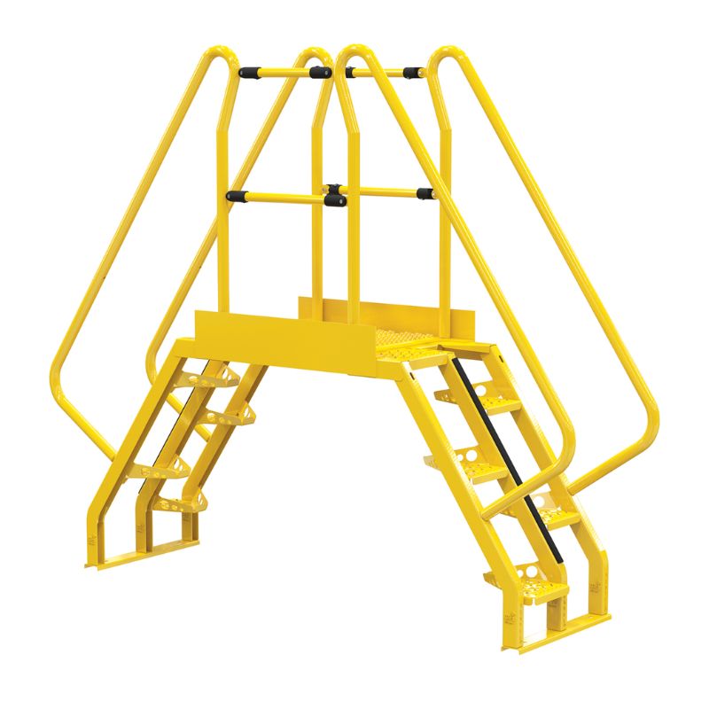 Mount this Vestil COLA-3-56-32 Steel Alternating Crossover Ladder where you need permanent access at crossover points. Alternating step design for shorter overall span than other units. The upper platform features removable two sided high handrail with mid-rail and fixed toeboards to prevent objects from rolling off. Includes lag-down points for securing to floor.