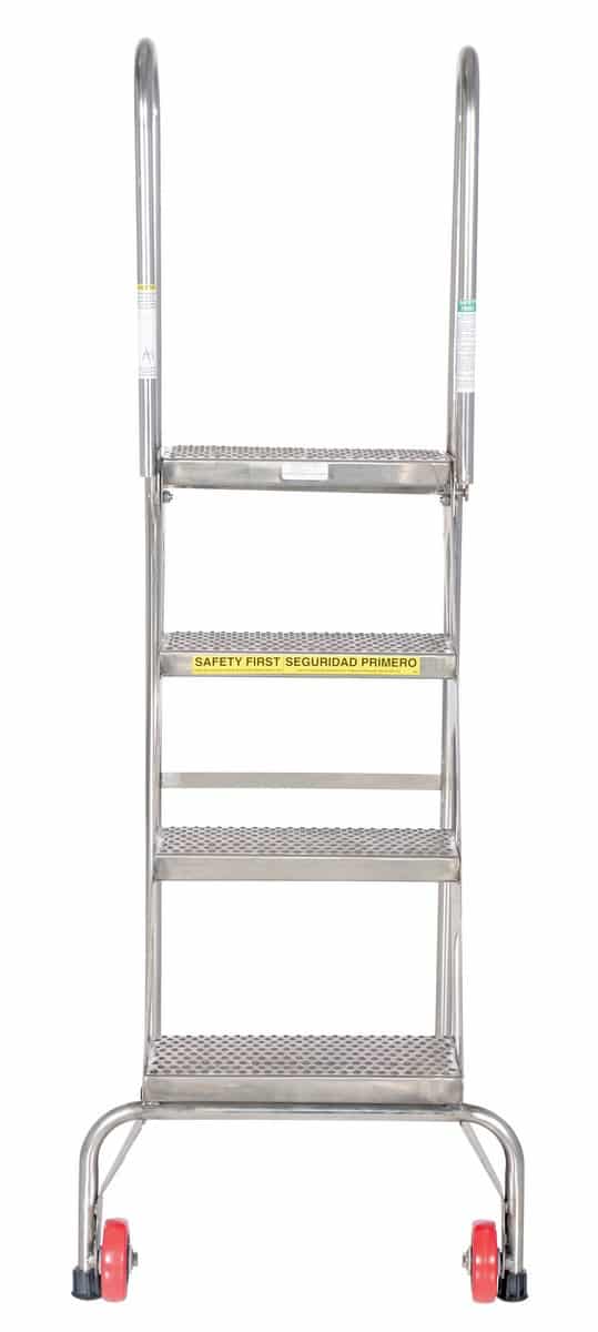The Vestil FLAD-4-SS Stainless Steel Folding Ladder with Wheels is the ultimate ladder solution for compact storage and easy mobility. With its innovative locking foldable design, you can save tons of space when the ladder isn’t in use. Simply unlock the spring-loaded detent pin and watch it fold effortlessly. Need to move it? No problem. Tilt it back on its wheels and roll it to wherever it’s needed. Plus, with its sturdy carbon steel construction and perforated non-slip steps, this ladder is built to last and keep you safe.