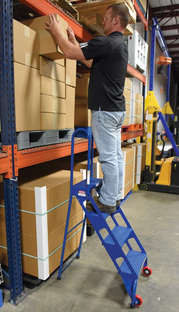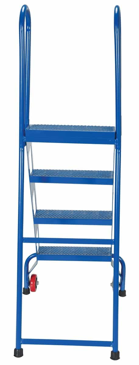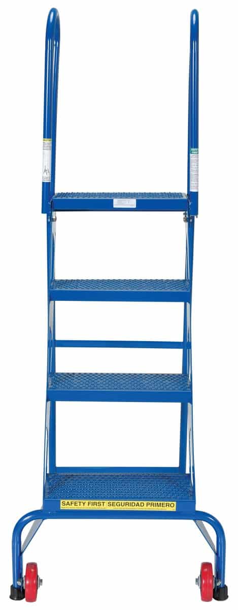 Introducing the Vestil FLAD-4 Stainless Steel Folding Ladder with Wheels – the ultimate space-saving solution! With its innovative locking foldable design, this ladder can easily be stored away when not in use. Just unlock the spring-loaded detent pin and watch it fold up to a compact size. Plus, thanks to its handy wheels, you can now tilt it back and take it anywhere with ease. Made from durable carbon steel, with non-slip perforated steps for added safety, this ladder is a must-have for any workspace.