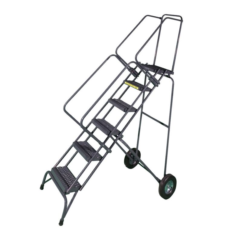 The Ballymore FAWL-6 Fold and Store 6-Step Gray Steel Folding Rolling Safety Ladder is an ideal solution for quickly and efficiently completing projects at your business or commercial facility. Boasting large 30″ high handrails and 10” rubber wheels, this ladder offers superior maneuverability by allowing it to be tilted and rolled with ease – without the need for folding! Constructed from a durable steel frame coated in a sleek gray powder finish, the ladder’s surface resists scratches as well as water damage so that you can have peace of mind using it under any conditions. While delivery requires some assembly on site, having such convenient equipment around will make all tasks much easier than before!