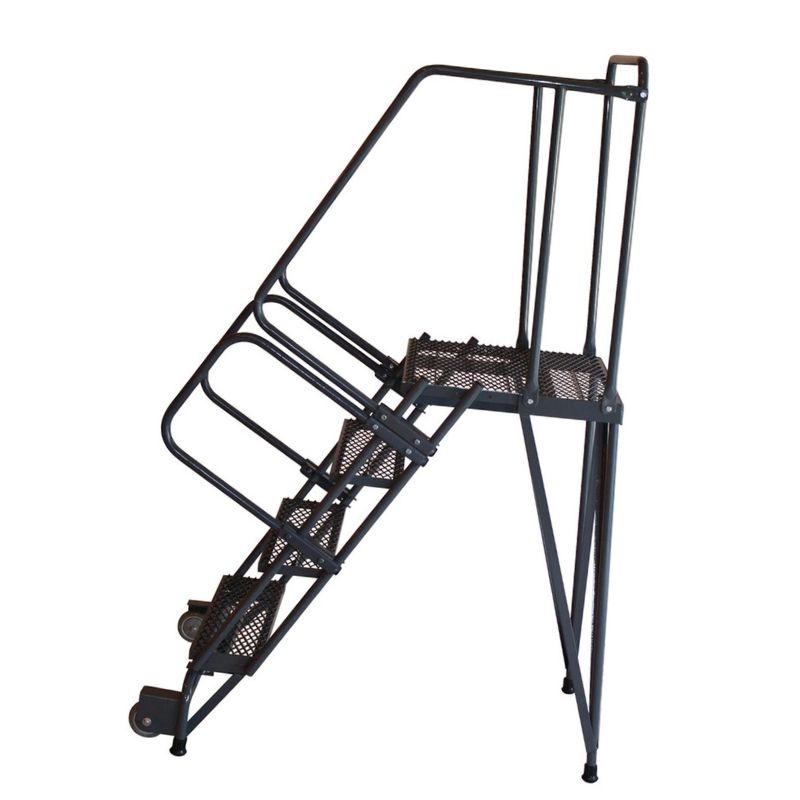 The Ballymore HL-3NS Tilt and Roll 3-Step Gray Steel Rolling Safety Ladder with Straddle Base, with 24″ wide steps and a 20″ deep top step, offers enhanced stability and comfort. Generously perforated tread allows water to pass through while also providing excellent traction for secure footing. An integrated work platform furthermore enables users to keep their materials at hand as they move up the ladder’s rungs.