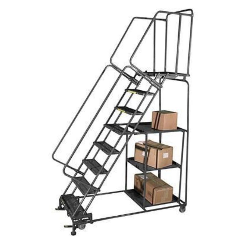 This superior ladder offers a secure design for maximum user safety. With the easy-to-operate foot pedal lockstep, movement is prevented with simple activation so that each climbing experience can be conducted safely and efficiently. Additionally, steps are wide (16″) and perforated which ensures optimal traction plus drainage to minimize risks of slips or falls while ascending/descending. Further security comes from high handrails running along its length – as well as rear guardrail protection – making it easier to work at different heights comfortably without sacrificing stability during stocking or picking tasks alike. Moreover, the 14″ deep top step provides generous space allowing users better mobility when working this unit; although do note unassembled shipping applies here too!