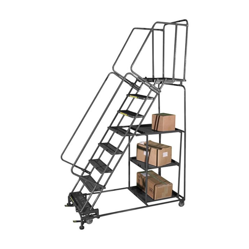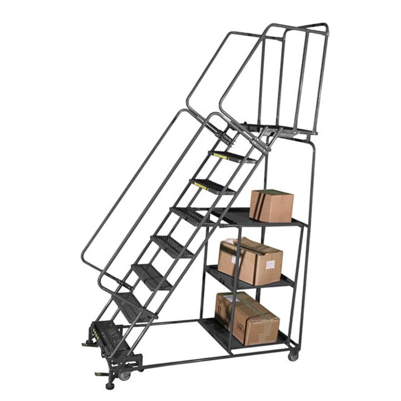 Equip your operation with the ultimate convenience of using a rolling safety ladder and stock-picking cart as one. With the Ballymore SPL-7-N 7-Step Gray Steel Rolling Safety Ladder/Stock Picking Cart, you can experience up to 600 lbs in maximum combined user weight capacity when both shelves are occupied – or take advantage of 300 lbs on each shelf if they remain unoccupied.