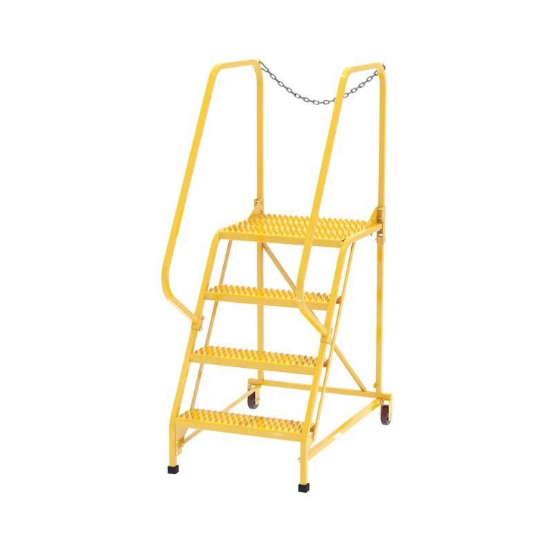 Vestil LAD-MM-4-G-YL Steel Maintenance Ladder for use around a variety of stores and inventory rooms. Constructed of a square tubing framework, which handles uniform capacities up to 350 lbs. the hand railing provides user safety while ascending or descending the unit. The distance between steps is 10″. Powder-coated finish for baked-in added toughness.