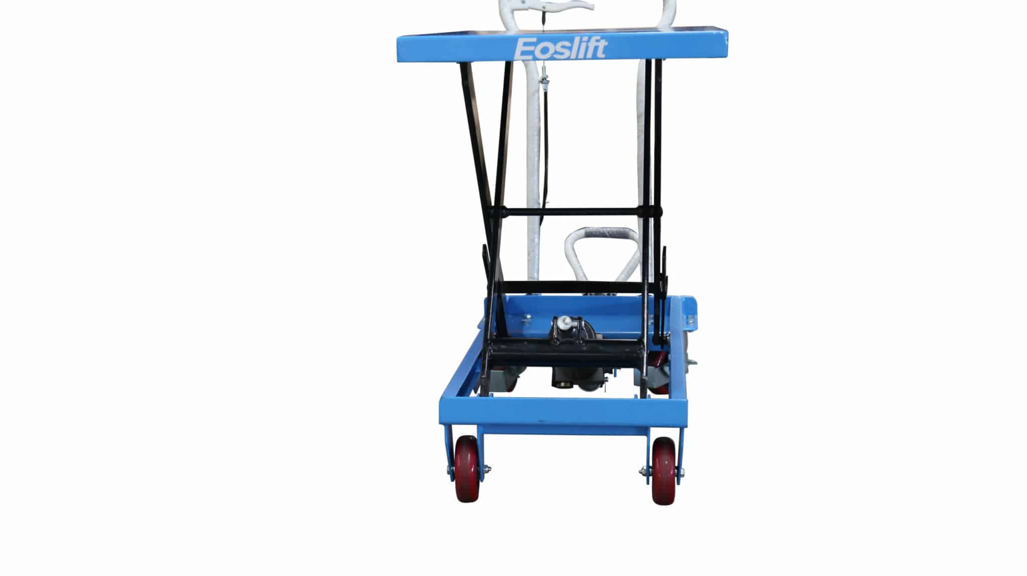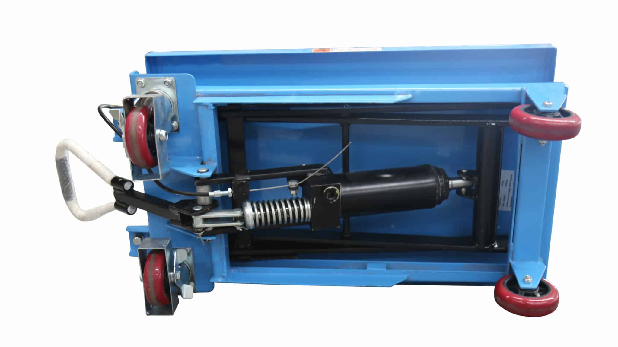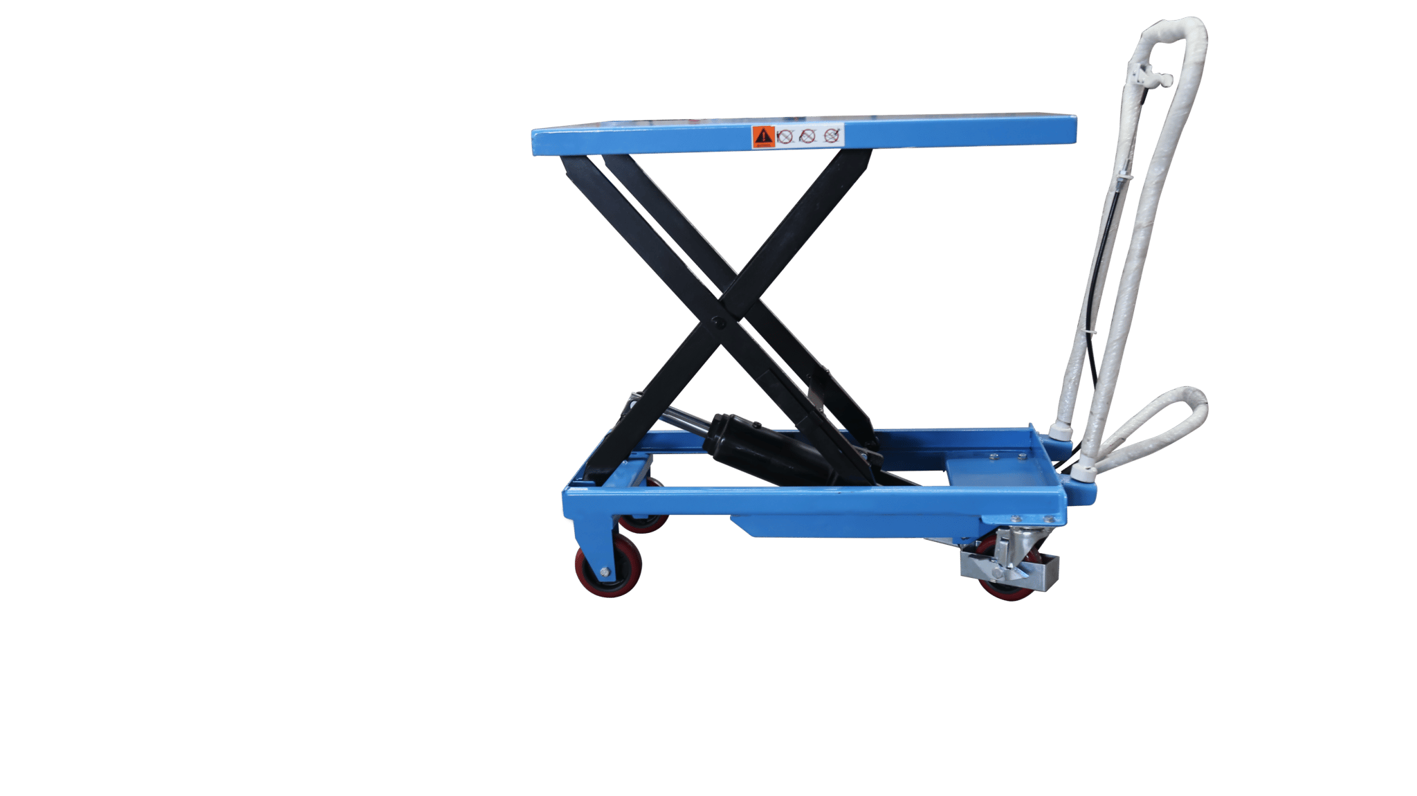 Eoslift TA15 Manual Scissor Lift Table Cart . The load maximum is 330 lbs., and it has a 29.7 in. raise height. The table measures 17.7 x 27.5 in. and is made of reinforced robotic welding to lift the heaviest items. It also features polyurethane wheels to complete any loading project.