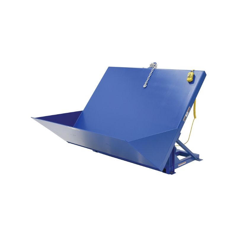 The Vestil EM1-500-6050-6 Steel Efficiency Master Tilt Table tilts pallets, crates, boxes, or baskets to facilitate easy container loading or unloading. The table features all welded steel construction for years of durability. The unique design minimizes pinch points to meet OSHA requirements. It’s ideal for upending products in shipping and receiving operations. The unit is equipped with an industrial quality motor that delivers the best torque with minimal amperage draw for maximum life. Standard voltage is 460/3PH with additional voltage options available. The tilt table has a standard push button hand control with a double acting cylinder for controlled tilt and return. The unit must be lagged to the floor.