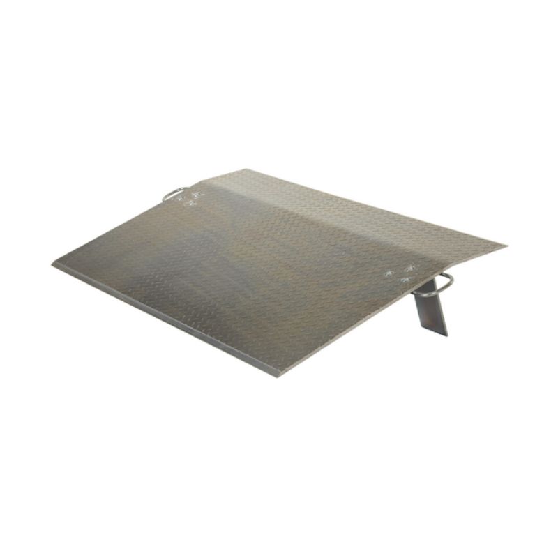 The Vestil EH-4842 Aluminum Economizer Dock Plate is an economical way to speed up truck loading and unloading. The unit spans the opening between dock and trailer to allow pallet or hand trucks along with traffic to safely move in and out of the trailer. The dock plate is constructed of high strength, non-skid aluminum alloy tread plate. The lightweight design with bolt on zinc plated legs and handles on each side makes portability easy. Locking legs for OSHA compliance. Not for use with fork trucks.