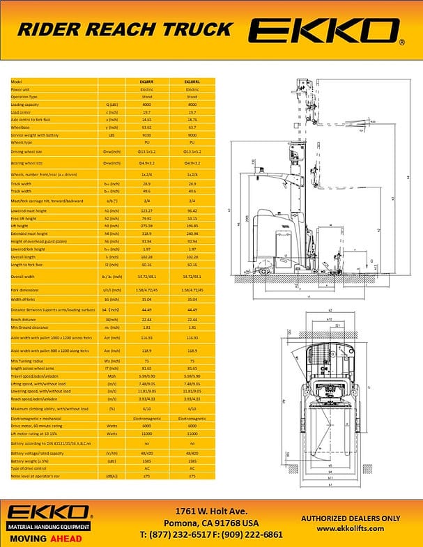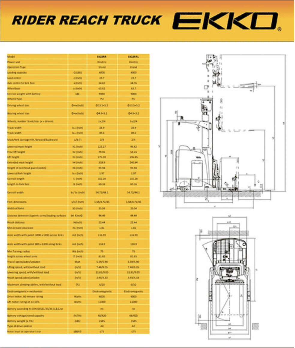 With the EKKO EK18RRL Electric Stand-Up NA Reach Truck, you can relax knowing your operations are running smoothly. This advanced machine combines all of the utility and agility of a forklift, reach truck, and walkie stacker into one workhorse unit ideal for loading docks, stock rooms, manufacturing floors, and more! Durable steel construction with high-quality components offers superior strength from rough terrain to impactful directional changes – take on any challenge in complete confidence no matter what usage or application is at hand.