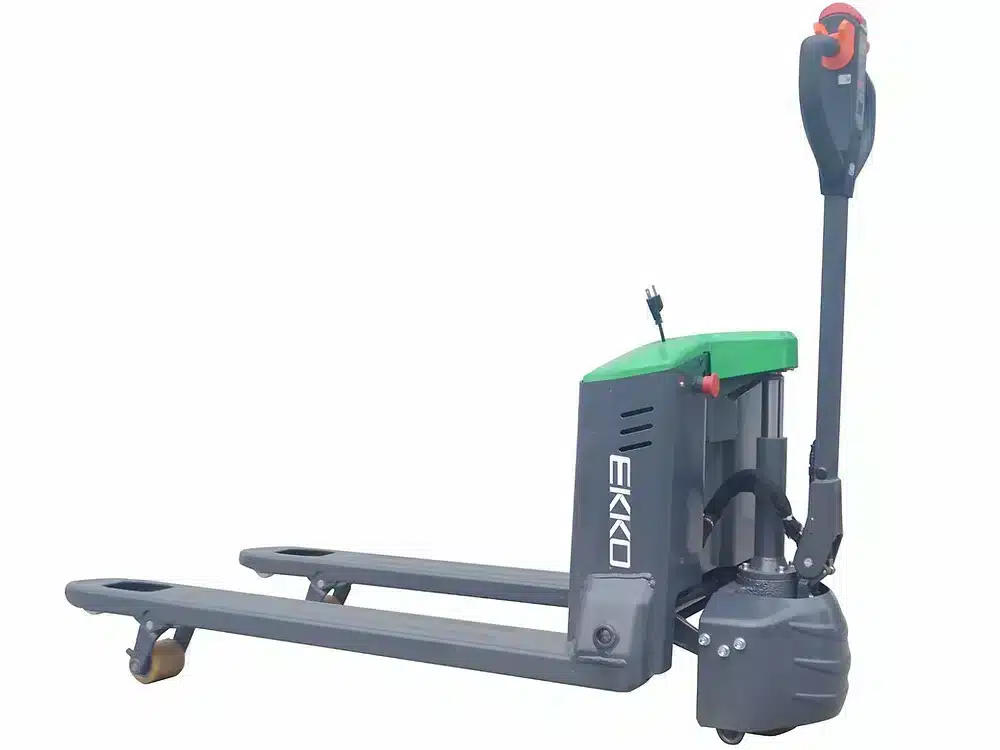 The EKKO EP15JLI Fully Electric Pallet Jack offers efficient and powerful performance perfect for a wide range of loading, unloading, stockroom, manufacturing floor, and warehouse tasks. Built from robust steel and advanced components crafted to withstand demanding usage conditions combined with reliable operations – these pallet jacks are an essential tool in any industrial environment.