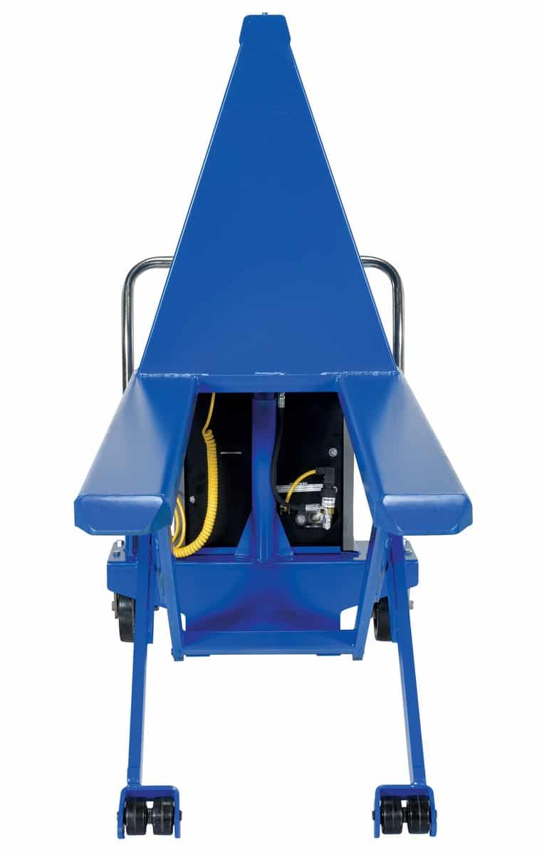 The Vestil HIPM-2748-AC High Lift Truck increases employee ergonomics and machine efficiency and productivity. It reduces muscle fatigue and body injuries by bringing material closer to actual worker height.