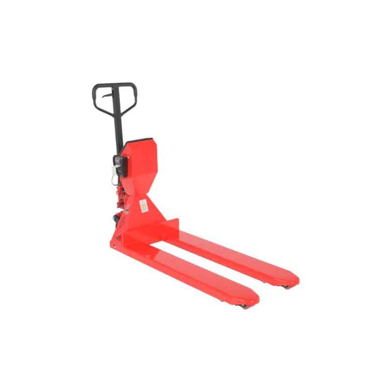 Maximize efficiency with the Vestil PM-2048-SCL-LP-PT Steel Low Profile Pallet Truck with Scale and Printer. This user-friendly unit features a heavy-duty steel construction for maximum strength and durability. Weigh your load on the spot with the built-in scale and printer. The scale offers selectable increments and keyboard calibration, ensuring accuracy and adaptability to your load size. Digital filtering compensates for vibration and motion, providing smooth and precise measurements. Powered by batteries and an included AC adapter, this pallet truck with scale is ready for any task. Step approval is also available.