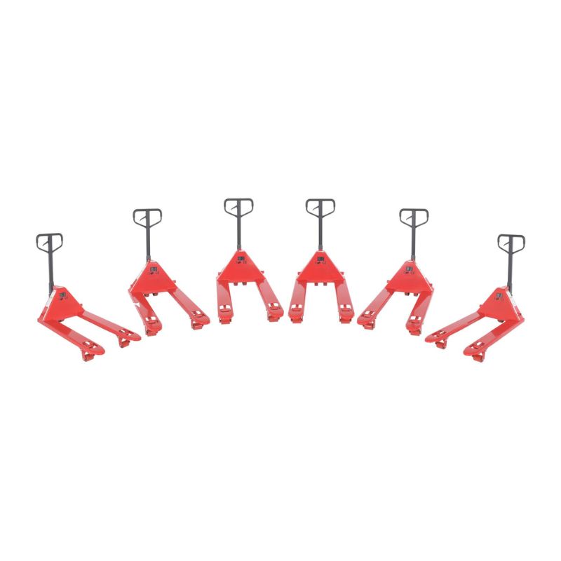 Move heavy pallet loads with ease using the Vestil PM5-2742-6PKG Steel Full Featured Pallet Trucks. This affordable and ergonomic solution eliminates the need for a fork truck. With two steering wheels and two front load rollers, maneuverability is a breeze. The reinforced triple-formed steel forks provide exceptional strength, while the internally mounted solid steel adjustable push rods ensure durability. The spring-loaded handle and chrome-plated hydraulic pump piston add convenience and longevity. Say goodbye to heavy lifting and hello to efficient pallet handling.