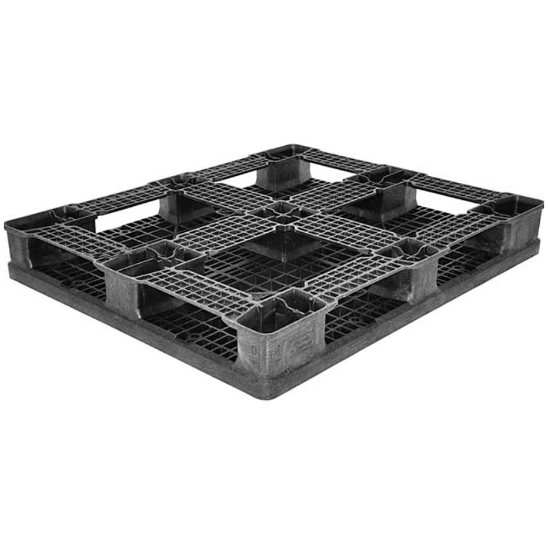 The Material Handling RCK 111 Plastic Pallet is a 4-way entry rackable and stackable pallet that has a ventilated top deck and a cruciform bottom deck. This design measures 40” x 48” x 6.25” and weighs 57 lbs. It holds a dynamic capacity of 5,000 lbs and a static capacity of 20,000 lbs. It also has a racking capacity of 2,800 lbs.