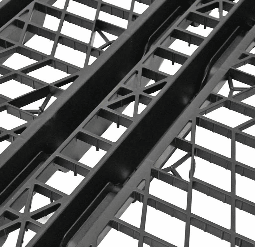 The Material Handling EXP 110 Plastic Pallet is the perfect choice for exporting goods. This ventilated pallet has a 4-way runner bottom deck with a dynamic capacity of 3,000 lbs, and a 6,000 lb static capacity. The EXP 110 is also 100% recyclable, making it a great choice for businesses that are eco-conscious.