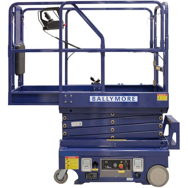 Experience a safer, more comfortable work environment with the Ballymore DMSL-12 Battery-Powered Drivable Compact Scissor Lift with Cantilevered Platform. This powerful device is equipped with two 12V batteries and can transport up to 500 lb., along with one operator, to heights of 18′ – ideal for hard-to-reach areas that require precision maneuvering. It also features an expansive 50″ x 28″ platform as well as a 22” roll cantilevered extension to access machinery without sacrificing safety measures; high guard rails help keep everyone secure while working on jobs big or small!