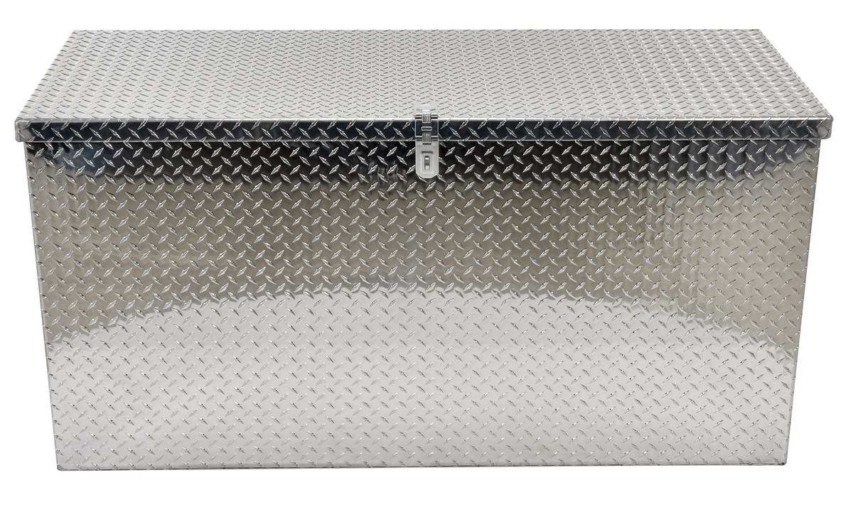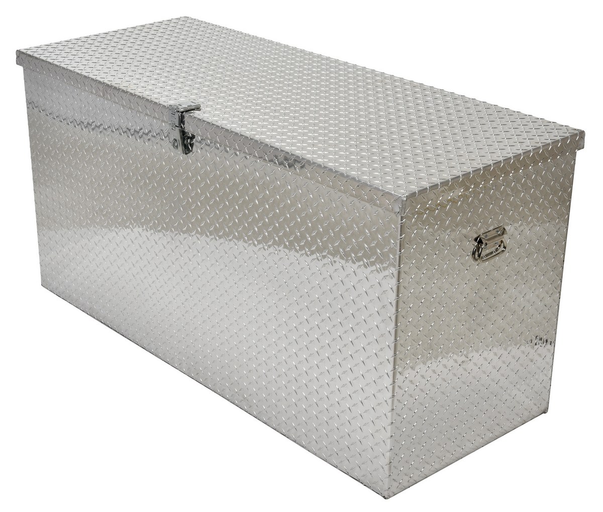 • Secure your tools and other belongings from theft with this Vestil APTS-3060 Aluminum Portable Tool Box. There is a safety double hinged hasp for padlock securing with padlock not included. Constructed of diamond tread plate material. Features two (2) sturdy handles for transporting.