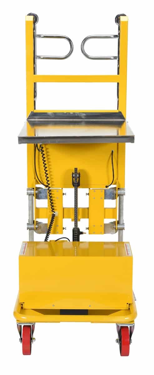 If you’re looking for an electric order picker that can guarantee you safety and productivity during long hours of repeated order picking, the Vestil EOP-440 Steel Electric Order Picker is the way to go! This easy-to-position unit is manually pushed and features a DC battery-powered lift with an onboard charger. Plus, with two front swivel casters and two rigid back casters, you can expect a smooth rolling experience all throughout your workday. Say bye to strain and hello to efficiency with this reliable order picker.